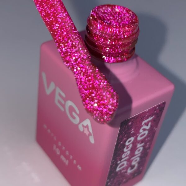Disco Vega — це колекція гель-лаків із мільйонами мікроглітерів, які неймовірно сяють під світлом. Створена для тих, хто любить ефект вау! Ідеальна як для повсякденного манікюру, так і для вечірніх образів.